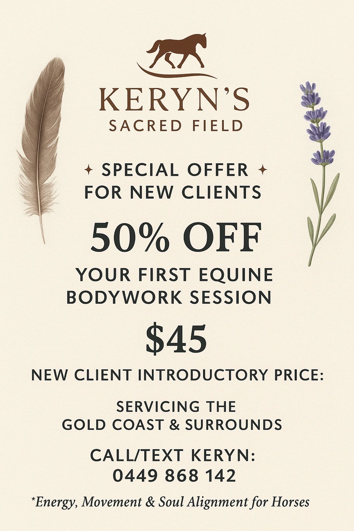 At Keryn’s Sacred Field, I look forward to supporting you and your horse on our holistic wellness journey together.